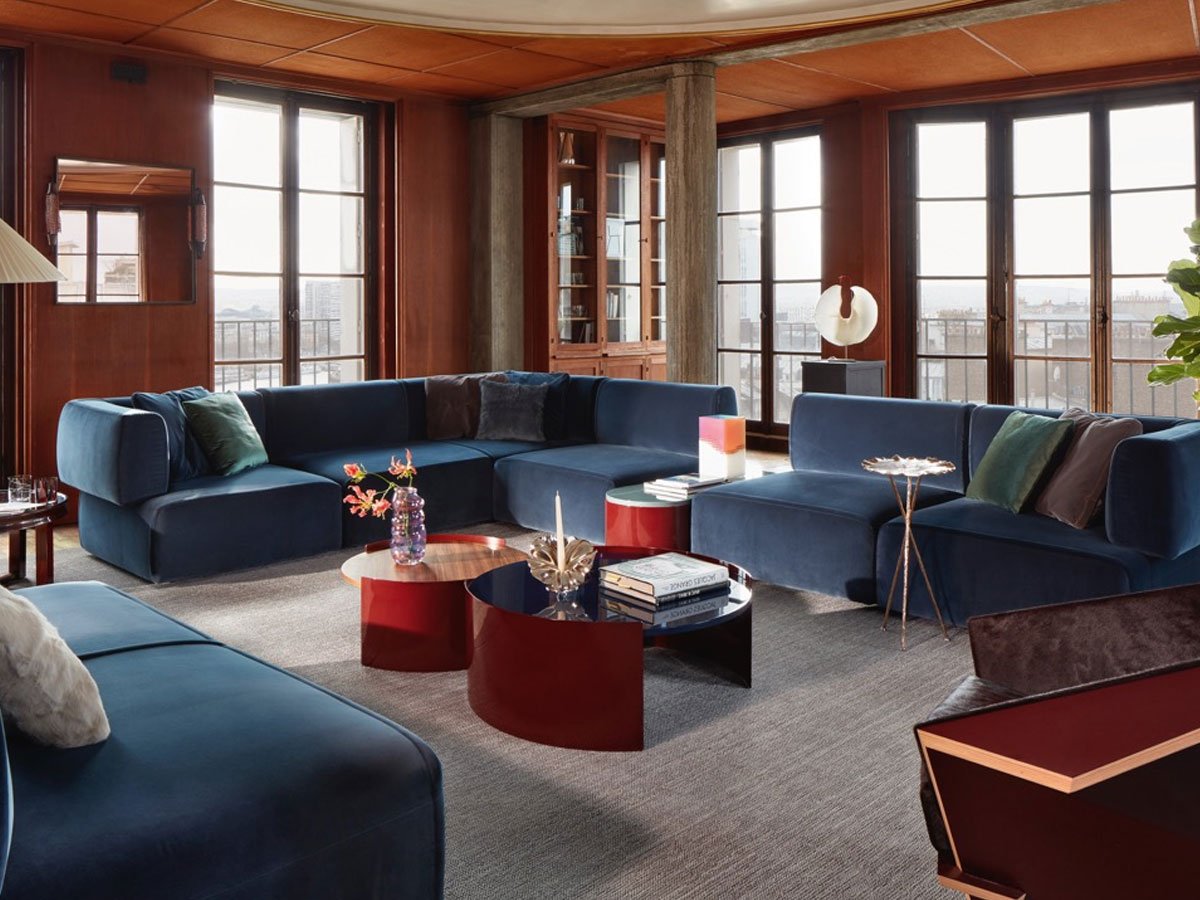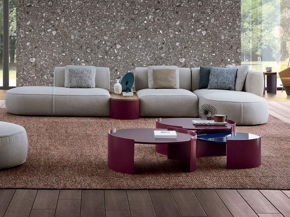 Bowy coffee tables are characterized by their beveled shapes, and the possibility of being overlapped and intersected, thus creating different geometric and color combinations. The 554 Bowy collection furnishes the living environment with numerous finishes for the top and wraparound structure, in three sizes that can be combined with each other.