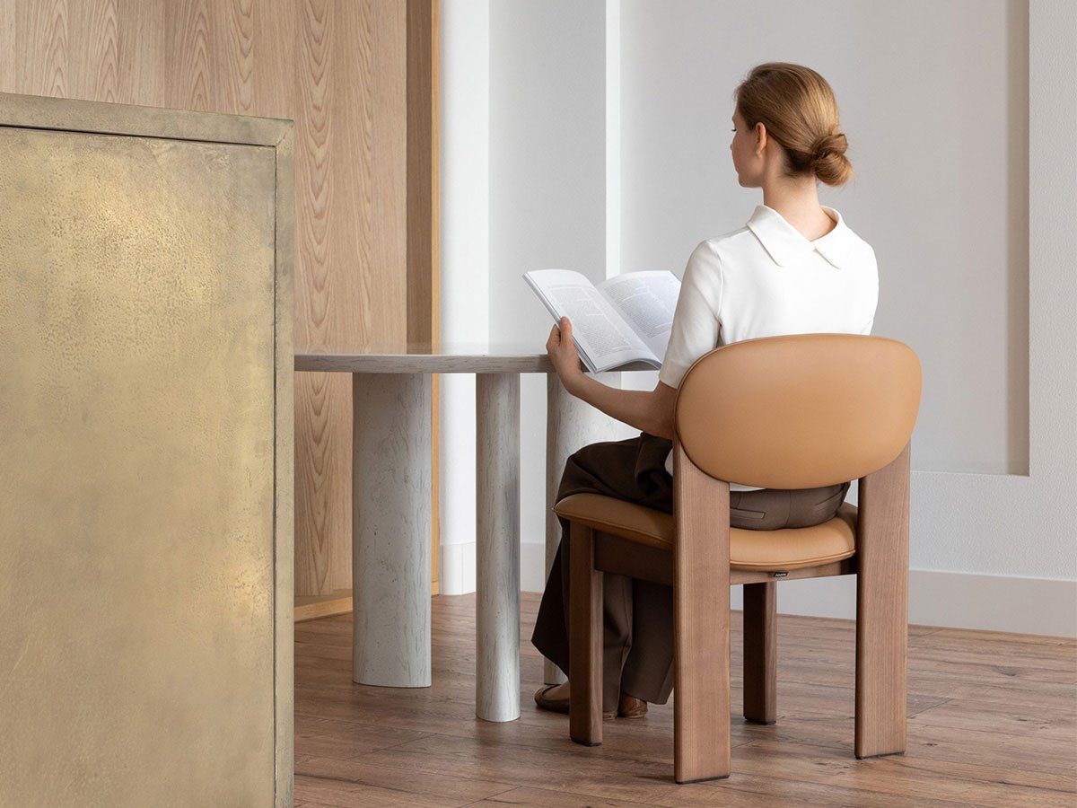 Archipen Chair, designed by Kateryna Sokolova for Noom, is a creation that celebrates the movement and dynamism promoted in "Archipentura," artistic research matured by Ukrainian artist Olexander Archipenko within the Kinetic Art current.