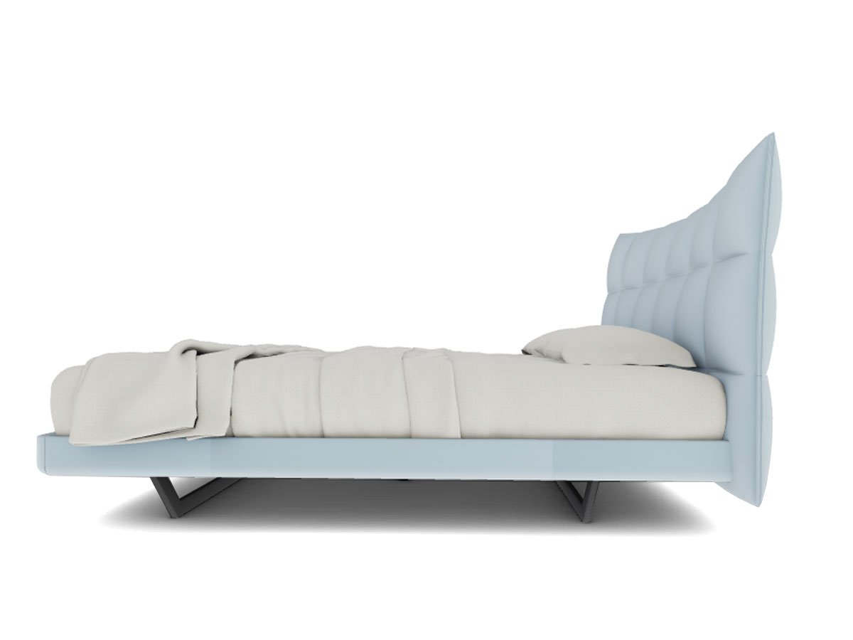 The headboard is wide and welcoming, embellished with delicate stitching with regular scans, forming a modern capitonné that recalls the atmosphere of the 19th century. The Aurora 3 bed joins the already famous collection of the same name. The new version is even softer and cosier. The head now reveals its sinuous curves, enhanced by the capitonné work.