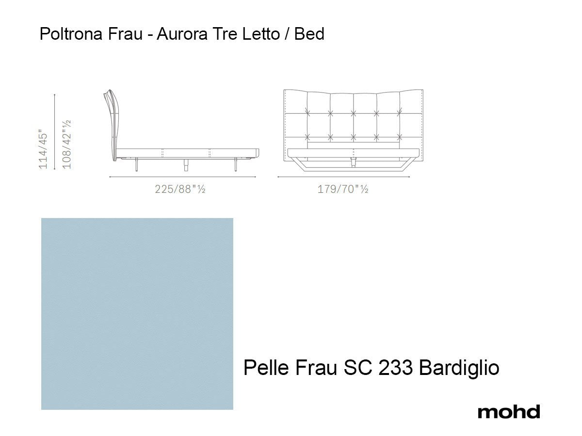 Aurora Tre is a refined bed designed by Tito Agnoli for Poltrona Frau. The headboard is made of birch plywood and MDF infills, padded with polyurethane foam of different densities and polyester wadding. Trapezoidal feet running the full width of the bed, available in two finishes. Upholstery in Pelle Frau® leather or in the Poltrona Frau fabric range.