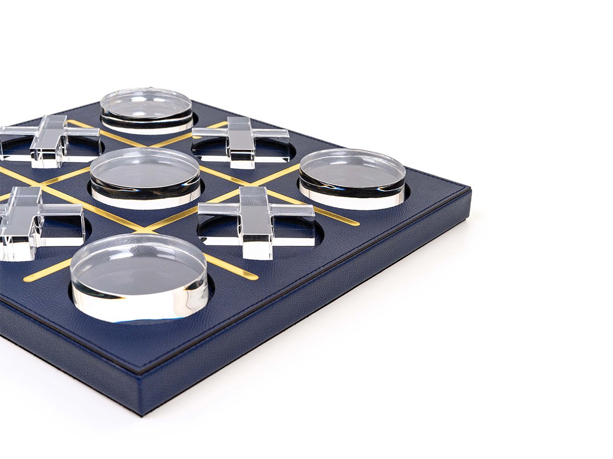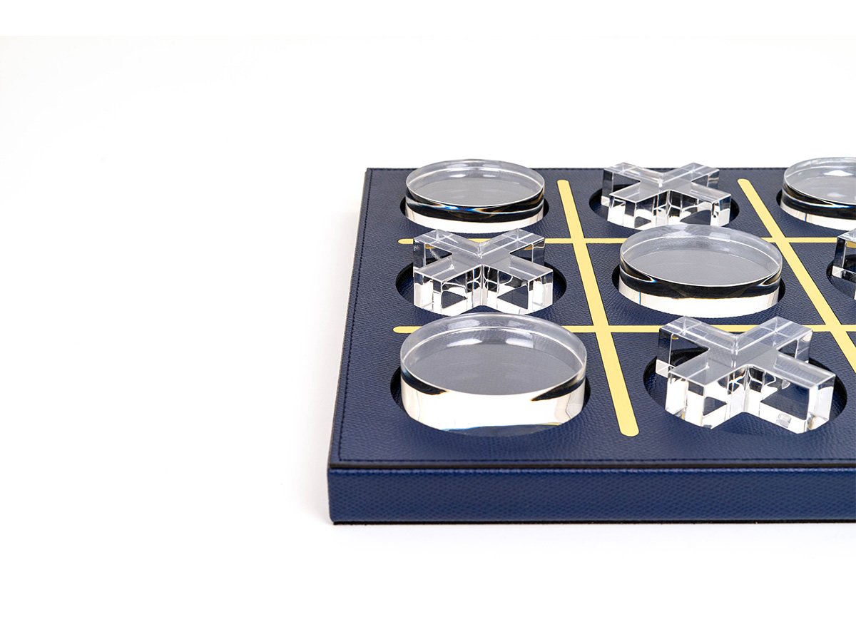 Boston Tris is made of fine Italian calfskin in blue - navy and includes 4 crosses and 5 numbers in transparent plexiglass.