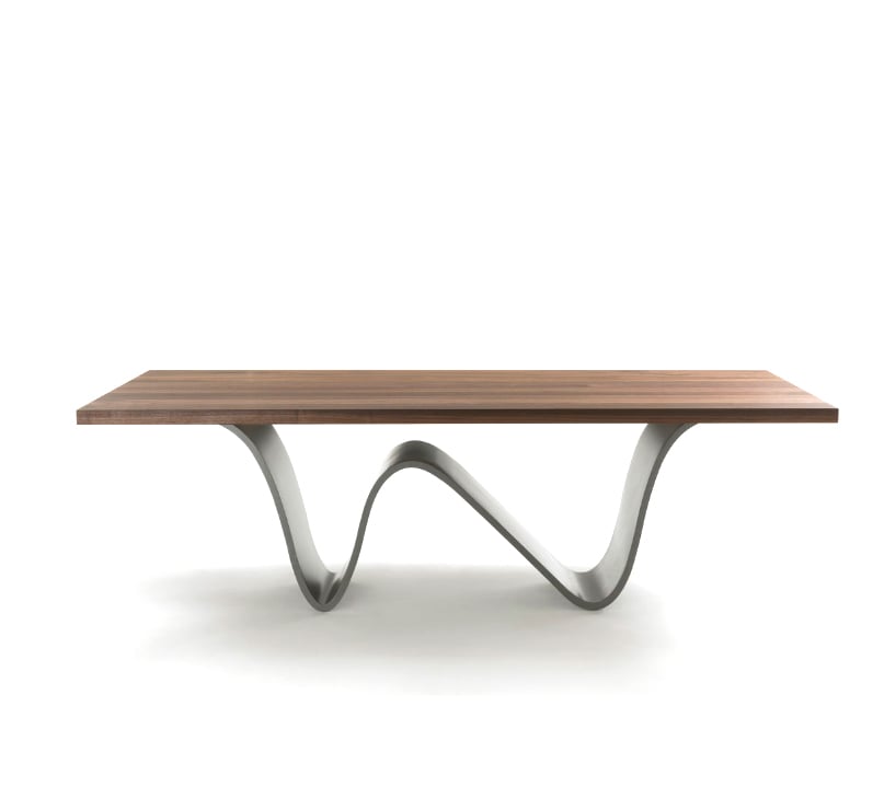 Bree e Onda is the table exceptional appeal signed by the duo designers Passon and Savorgnani for the brand Riva 1920. Base sculptural shaped sinuous wave top and solid.