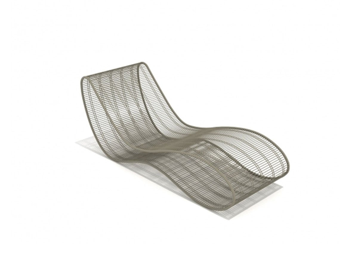 The chaise longue and the coffee table designed by Karim Rashid for the brand Talenti is made entirely of tubular net and interwoven in the shade taupe and white; optional cushions are made of a padded mat with a thickness of 3 cm Sunbrella fabric with laces at each corner to ensure a perfect stability, removable, easy to clean and resistant to weathering. The structure is treated iron nanoceramic, electrophoresis and powder coating.