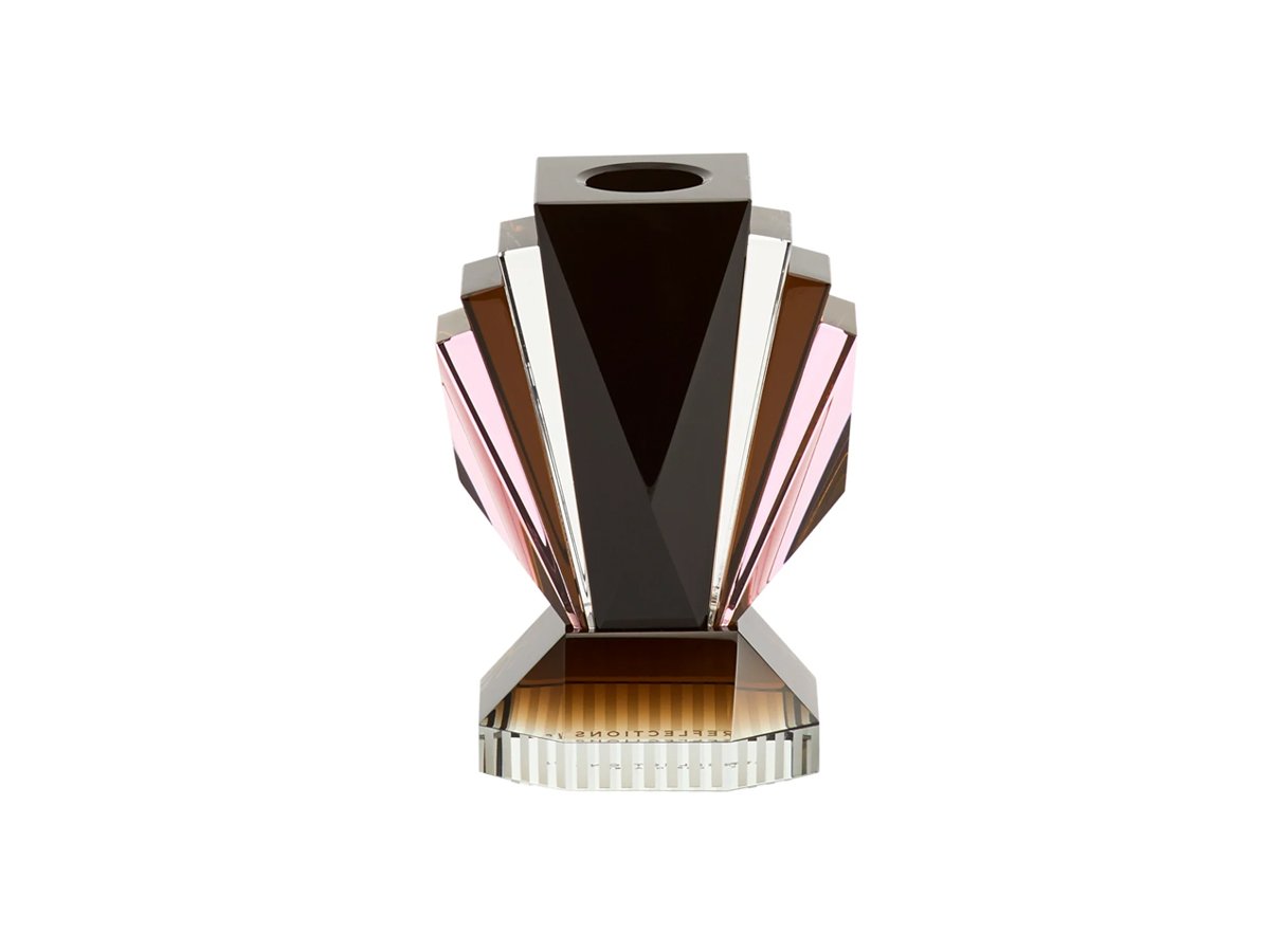 Brooklyn Candle holder is a handcrafted creation in fine hand-cut crystal in shades of brown, pink, and black.