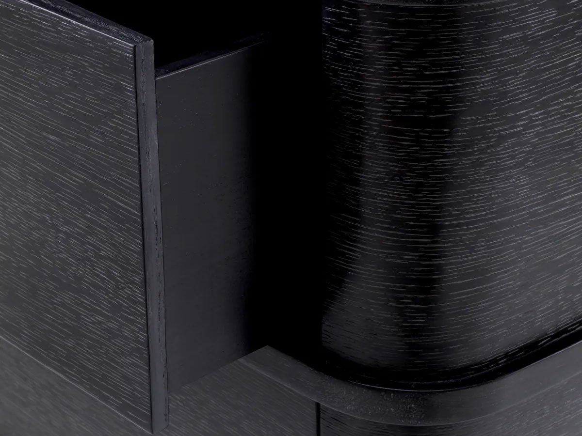 In this version, the Cabana nightstand comes in a charcoal gray oak veneer finish with a lilac white marble top.
