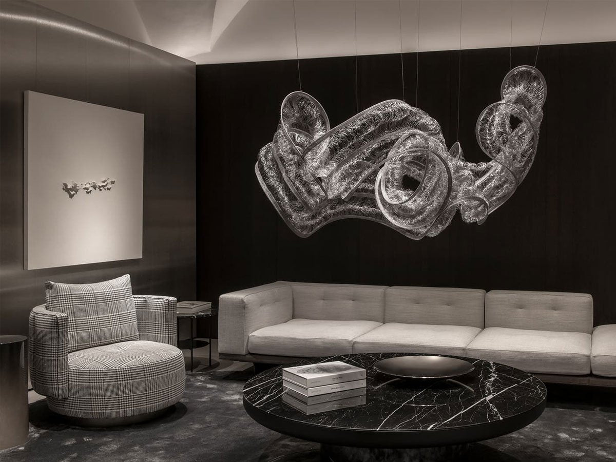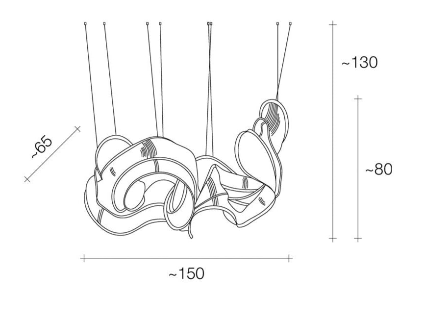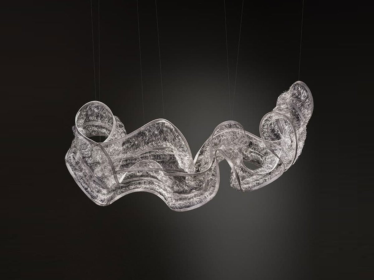 The creation of the Genesis entails a primordial act, where the birth of form emerges from the intertwined threads. It narrates an endless tale, where each weave evolves into new, living shapes. This suspension lamp not only dissolves boundaries between tangible and imaginary realms but also celebrates the merger of light with material. It is more than a lamp; it's an evolving artwork that introduces a flow of ethereal forms to any setting, whether in a contemporary living room or a stylish dining area. With its roots in Italian craftsmanship, the Genesis Suspension Lamp stands as a testament to the union of design and art, offering a luxurious and dynamic addition to upscale interiors.