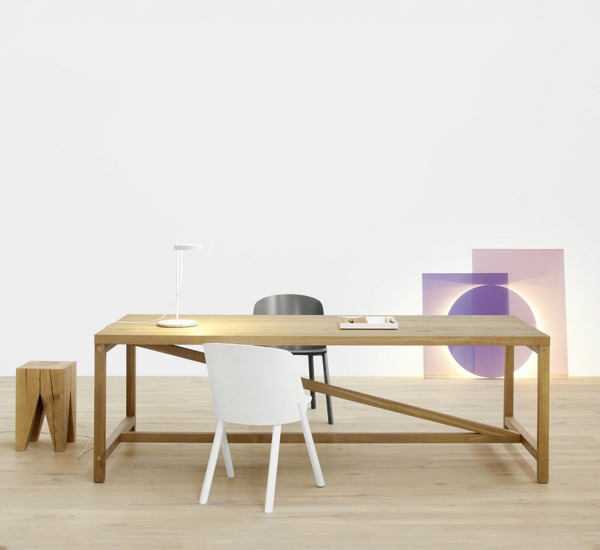 A sculptural aspect and abstract geometry to LT04 Colour, a floor lamp, designed by Daniel Rybakken and Andreas Engesvik.