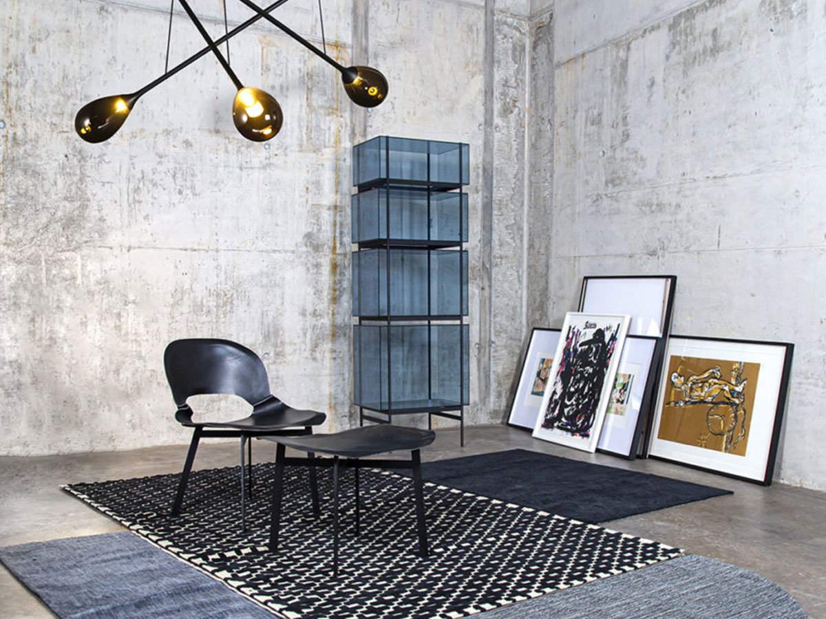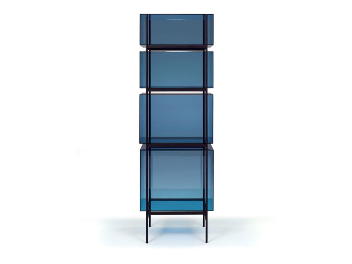 A structure that has been reduced to the essential, to have a play of materials and colors, and to be able to let as much light as possible pass through and play with perspective. An elegant and minimal design that manages to fit perfectly into any environment and which aims to make the objects that are exhibited by the protagonist. The structure is made entirely of steel, while the glass is completely handmade.