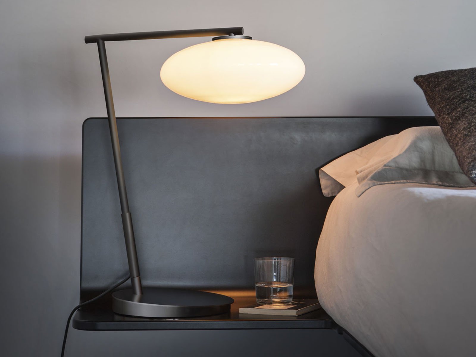 Mamì is a table lamp designed by Umberto Asnago for Penta, with metal frame and glass diffusers.