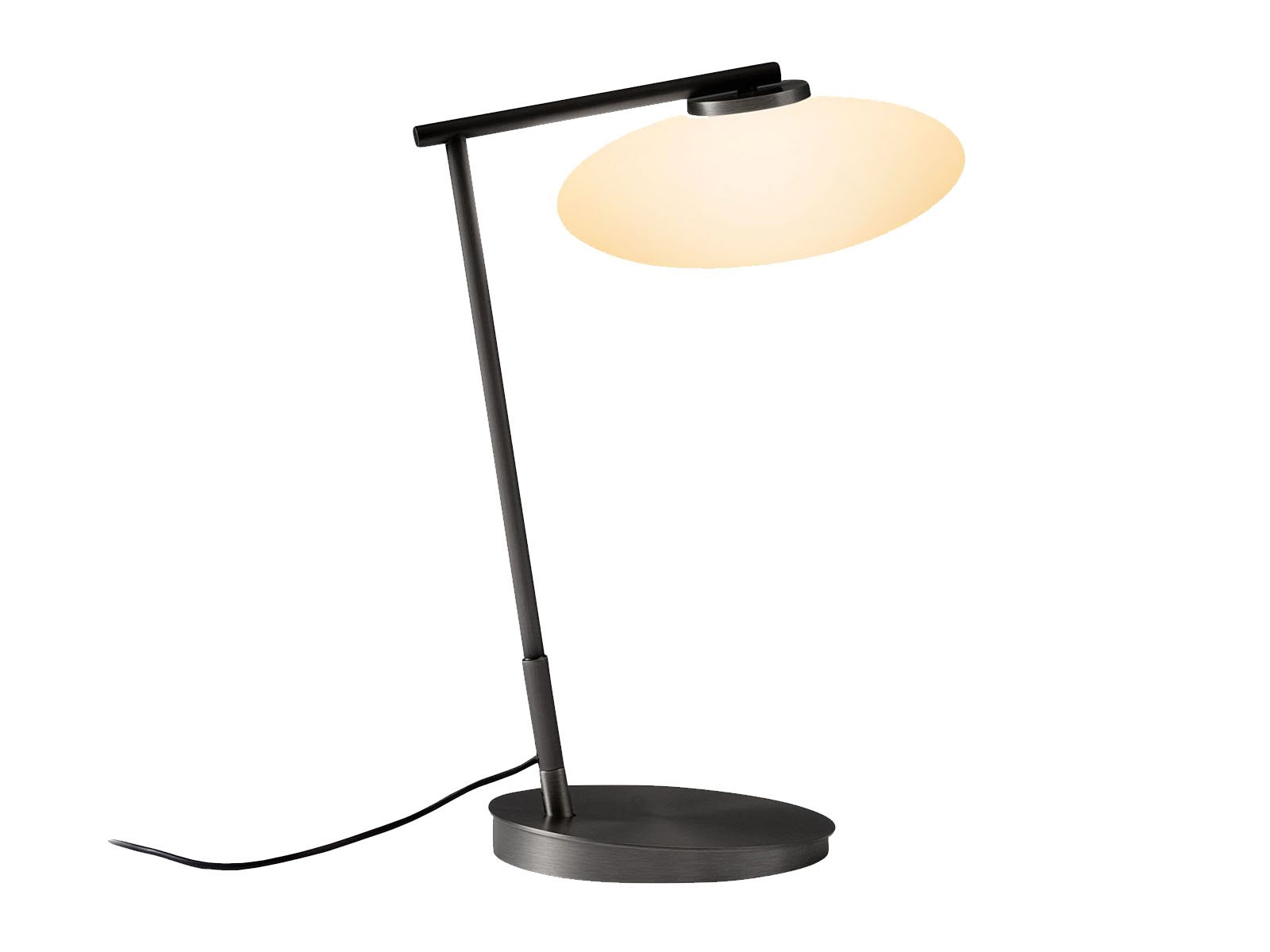 Mamì is a collection of lamps that includes: suspension, table, wall and floor lamp; all with a design that gives the lamp a statuary look of great visual impact. The frame is available in polished black nickel metal or bronze, while the diffusers are blown glass white or amber. Mamì table is available in two different sizes the Large and the Small latter in the base has a compartment in american walnut.