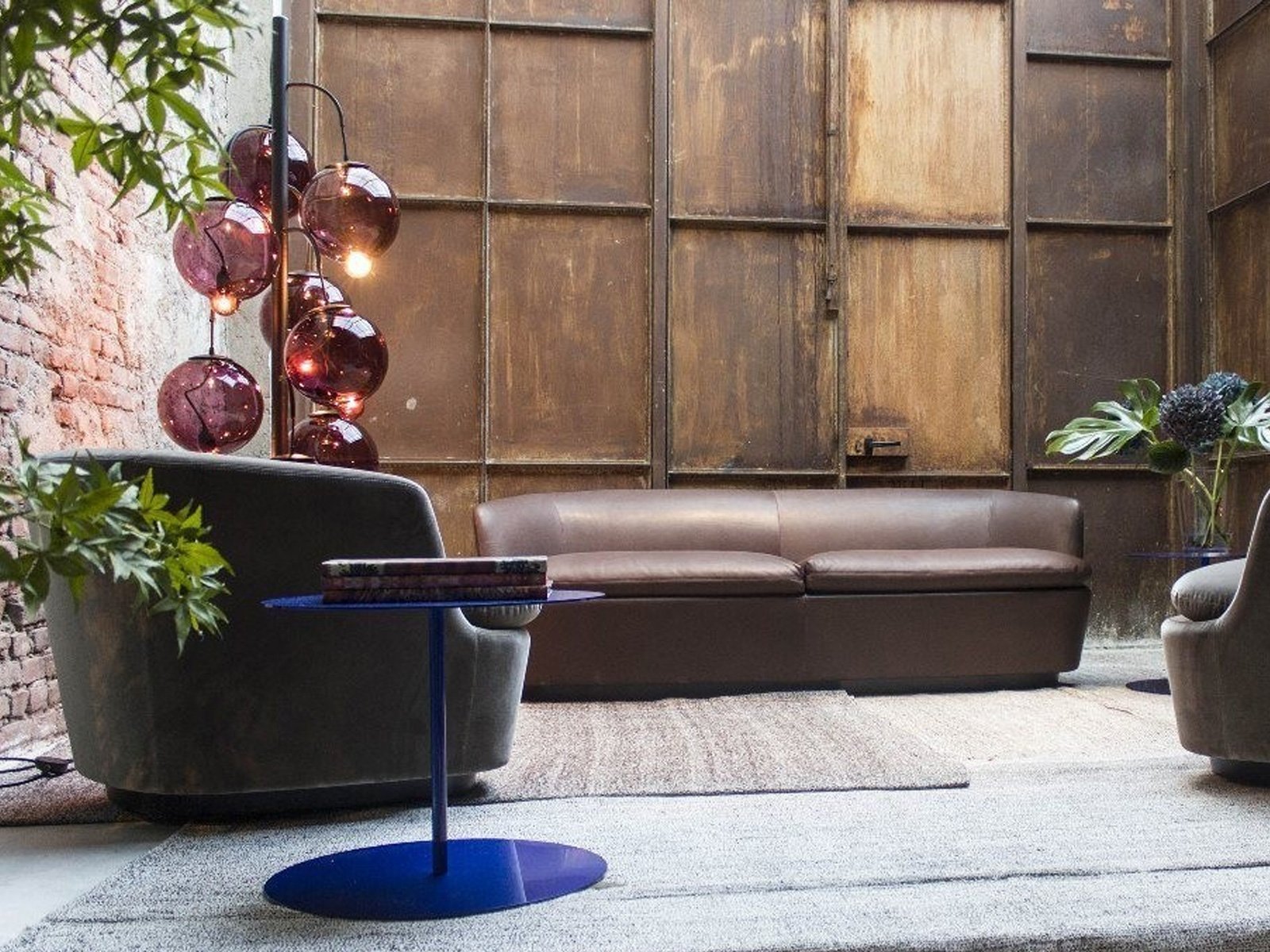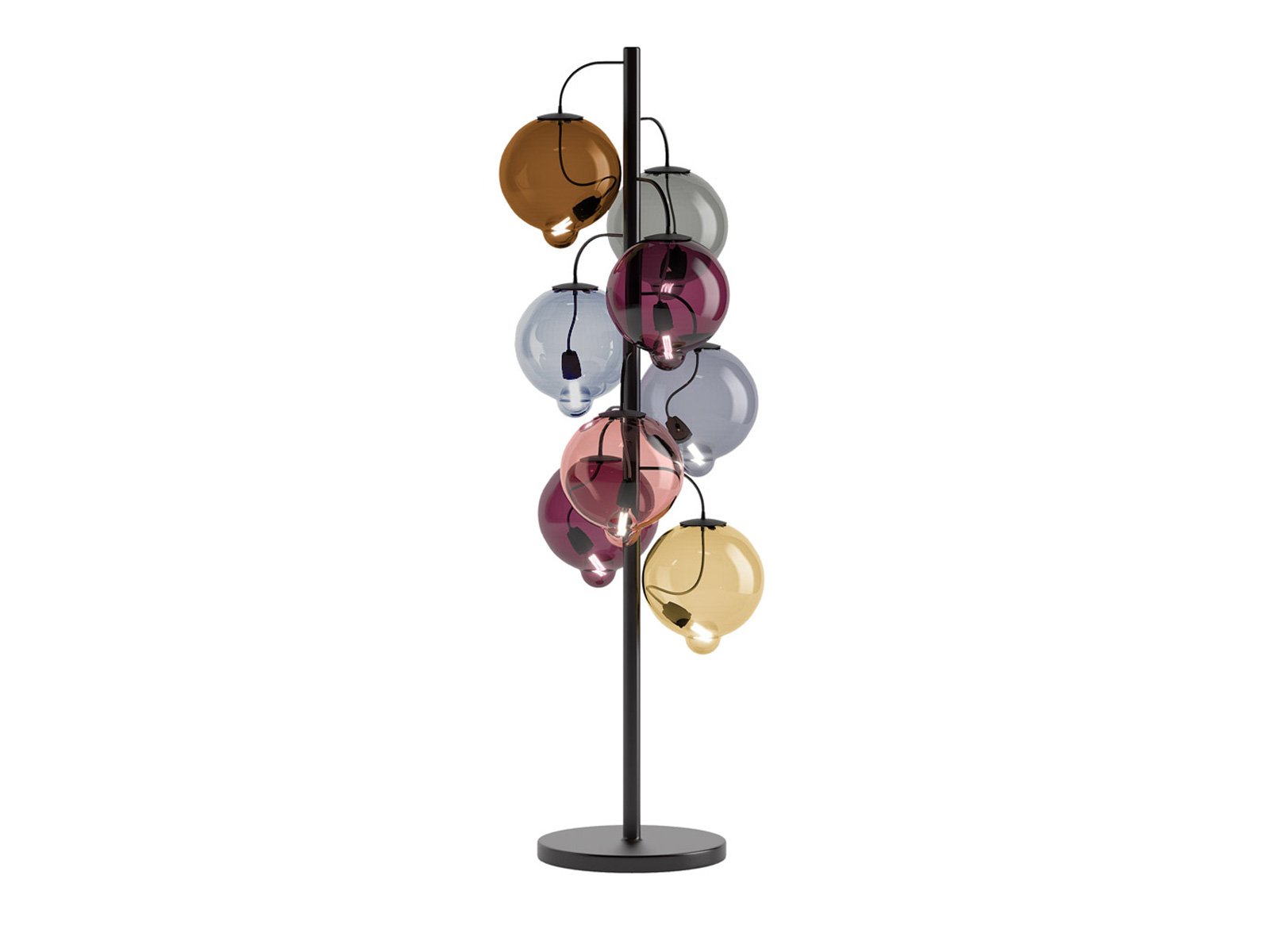 Meltdtown is a floor lamp with eight glass diffusers, designed by Johan Lindsten for Cappellini. Structure: Tube and sheet iron painted Matte Black finish.Meltdown is the result of fine and sophisticated craftsmanship: the diffusers in colored glass paste, are blown out of a mold. This type of work makes each piece unique, slight variations between diffusers Meltdown make a work of high quality style and aesthetics. Meltdown emits a light romantic and charming, suited to create a relaxing atmosphere and pleasant.Light Source: Max70W 230V for E27 socket (not included). Cable and holder black.In this version: 2 light blue shades, 2 amethyst shades, 1 tobacco shade, 1 pink shade, 1 dove-gray shade, 1 amber shade.
