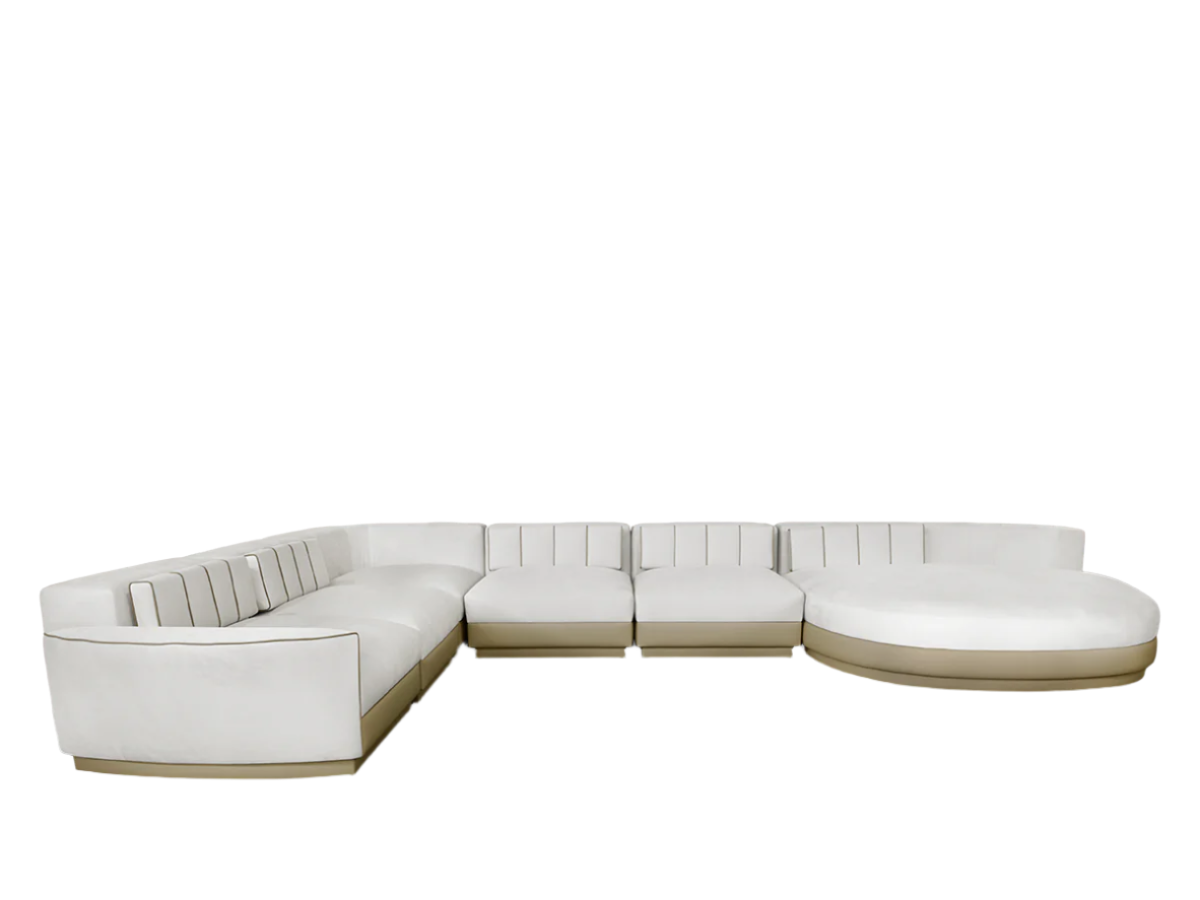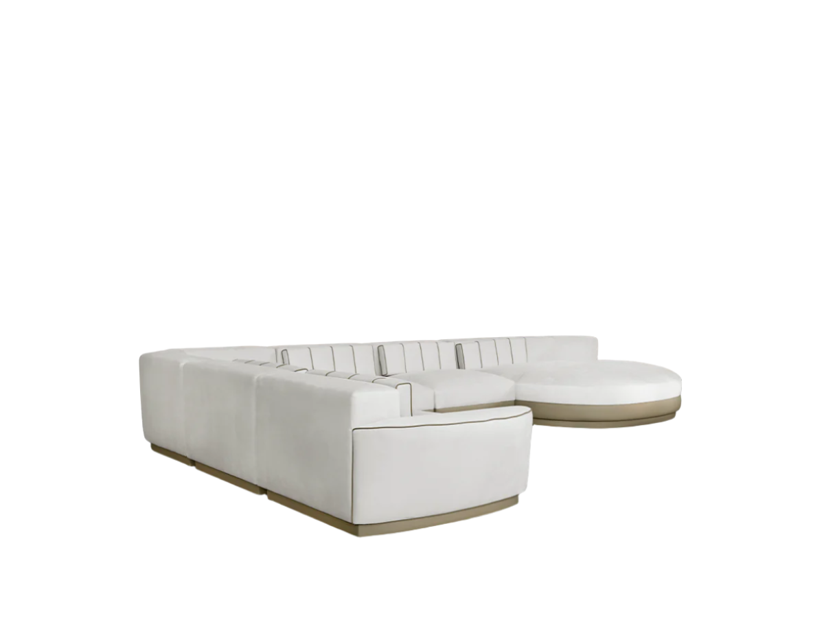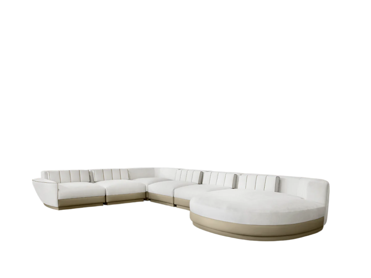 An ultimate statement piece, yielding an impressive length and modular capability, yet still very with a very subtle and soothing design. This sofa takes its name from the Milenio coffee variety, a plant that emerges in great heights and very well-known adaptability, making this sofa the perfect parallel of it. With a blend of hues, textures and materials, and with over 7 modules to change around, the circular modular is the piece that creates the character of the overall sofa, creating a distinctively modern and rich component to your living room.