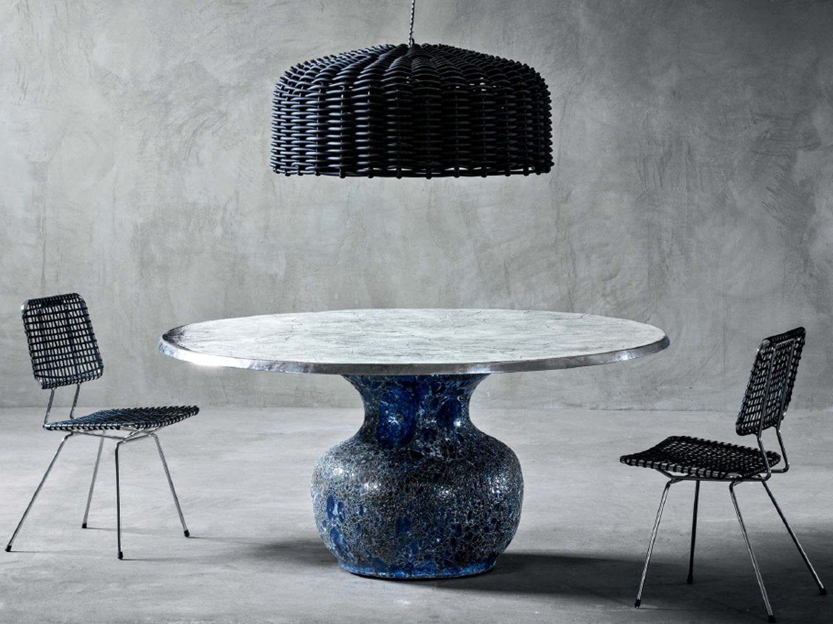 The Moon collection is among the novelties presented by Gervasoni at the Salone del Mobile 2018 in Milan. The base of these tables is made of blue ceramic, the central foot resembles an elegant long-necked vase. The top made of cast aluminium. Perfect for furnishing an elegant living room with style and sophistication.