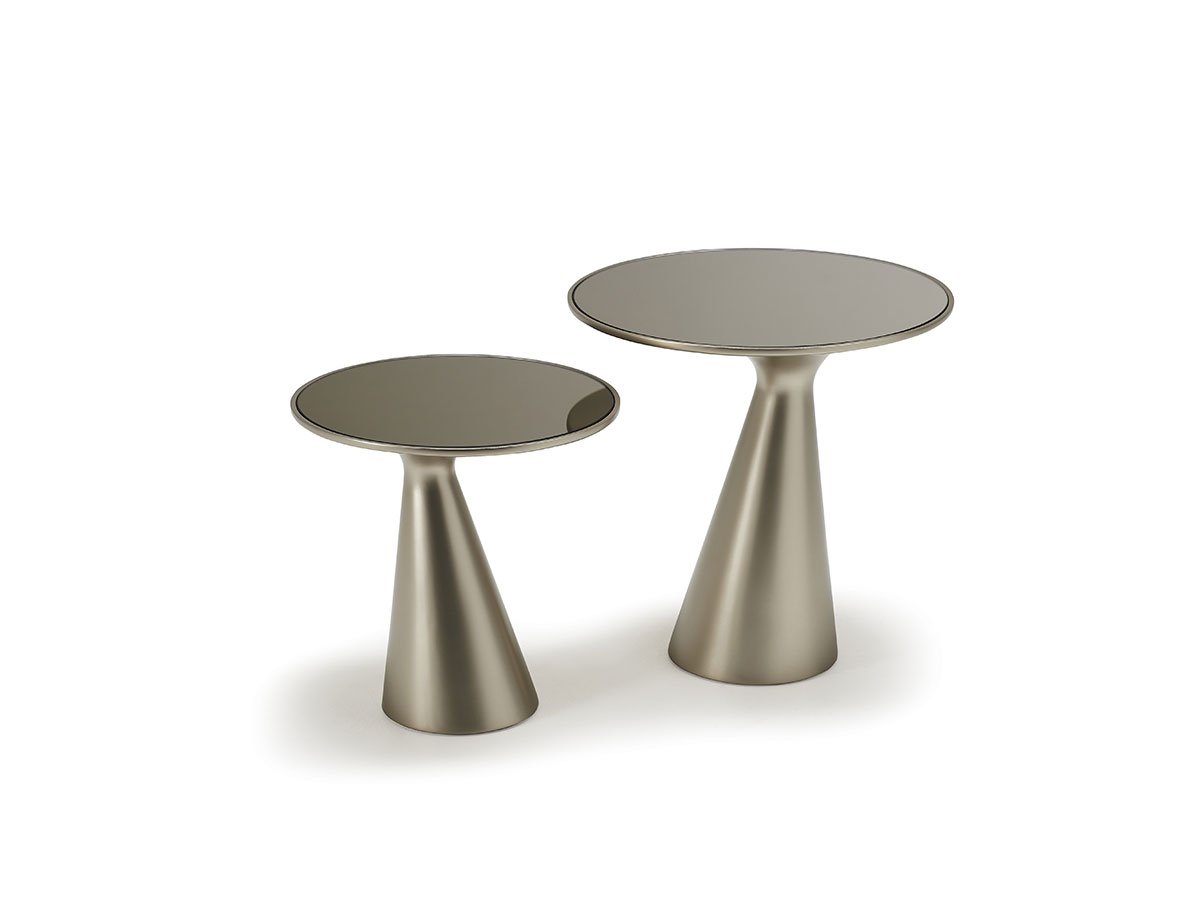 The Peyote coffee tables are made of matt white (OP71) or titanium (M11) painted rigid polyurethane. Top in 5mm extra-clear tempered glass painted white, bronze mirrored or smoked mirrored. Ideal next to the sofa, in the office or side by side, thanks to their contemporary design they leave you free to invent a new position every day at home.