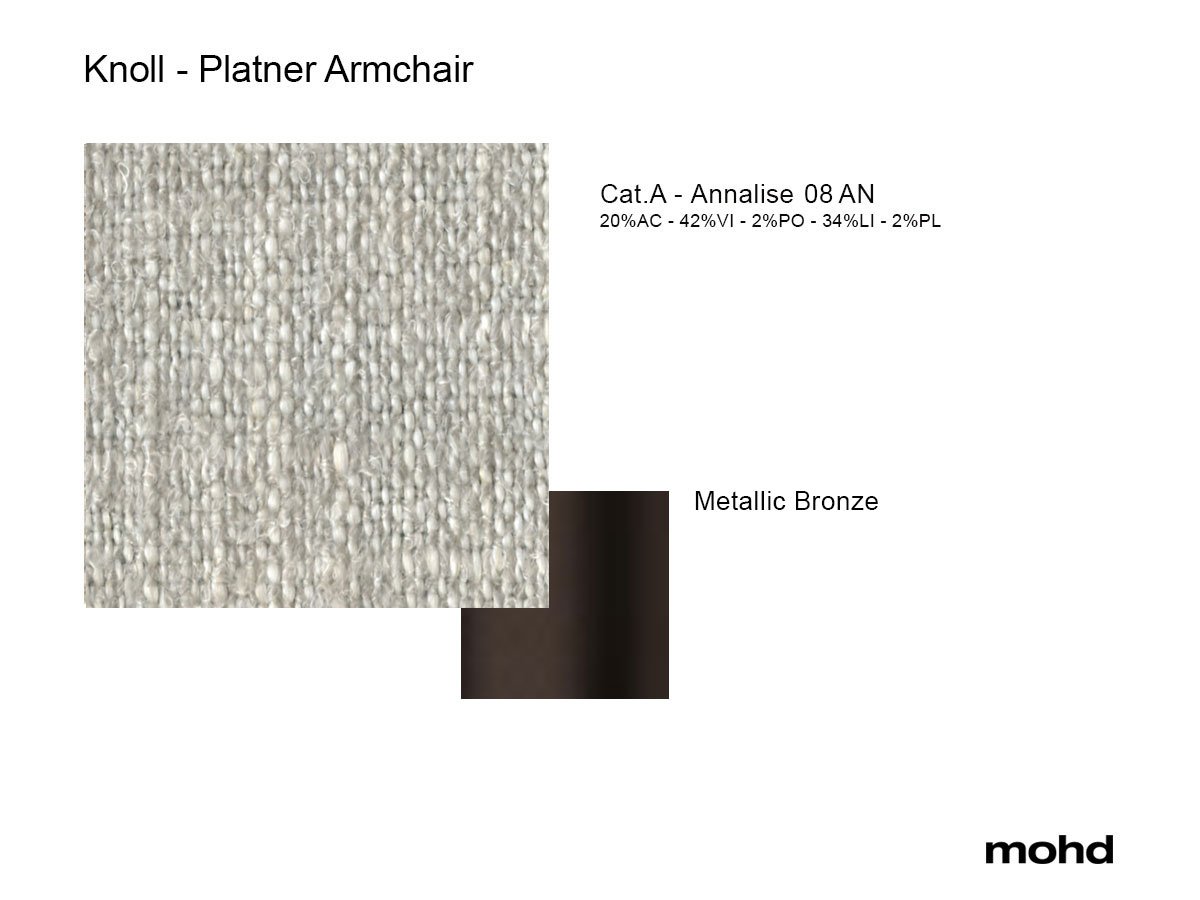 Platner armchair is characterised by an elegant, ergonomic and comfortable design. Whether a private living room or a public space, it will suit any environment and make a refined addition of style. Masterfully designed in 1966, it is still a contemporary armchair. On request, it is available in other fabrics.