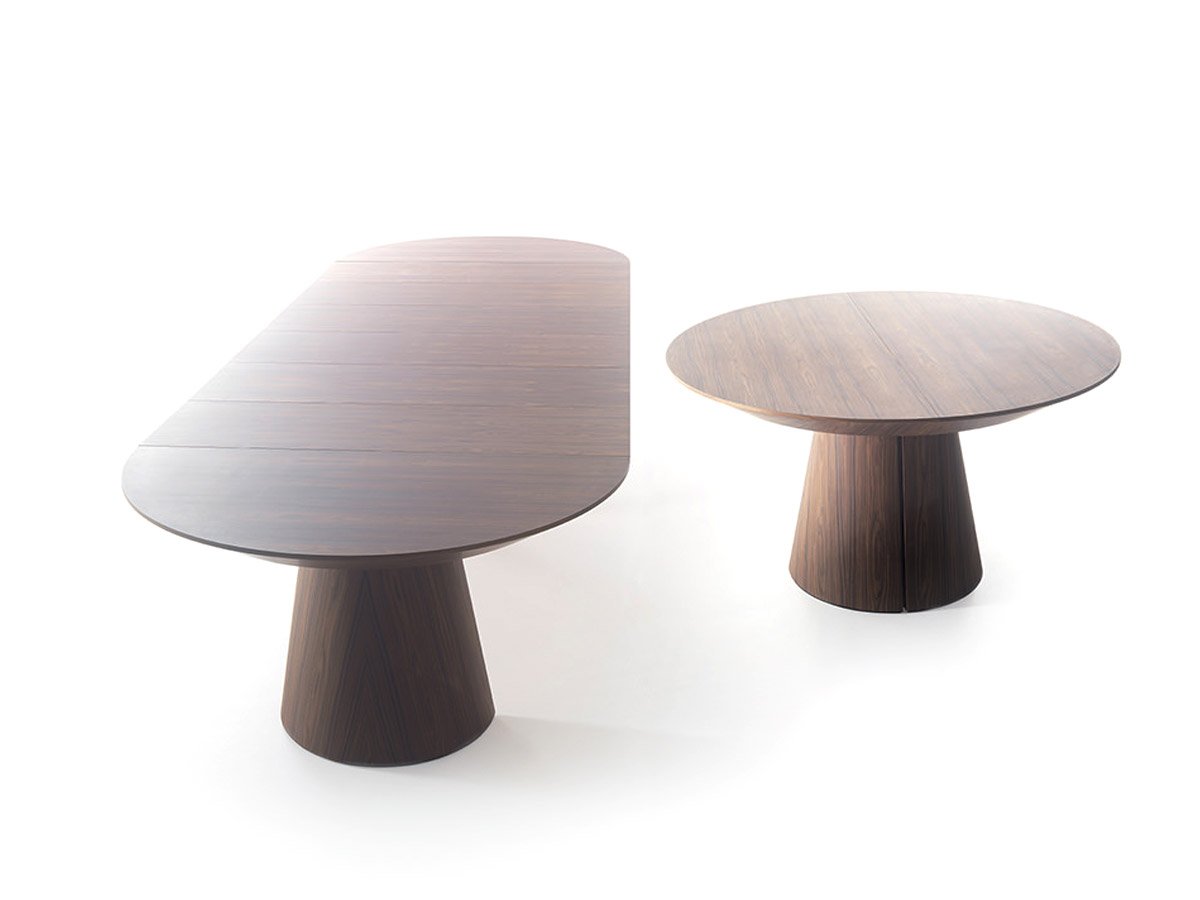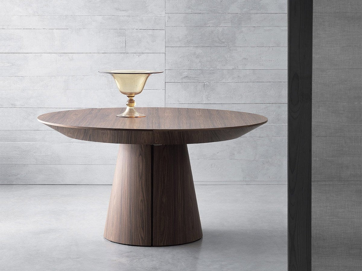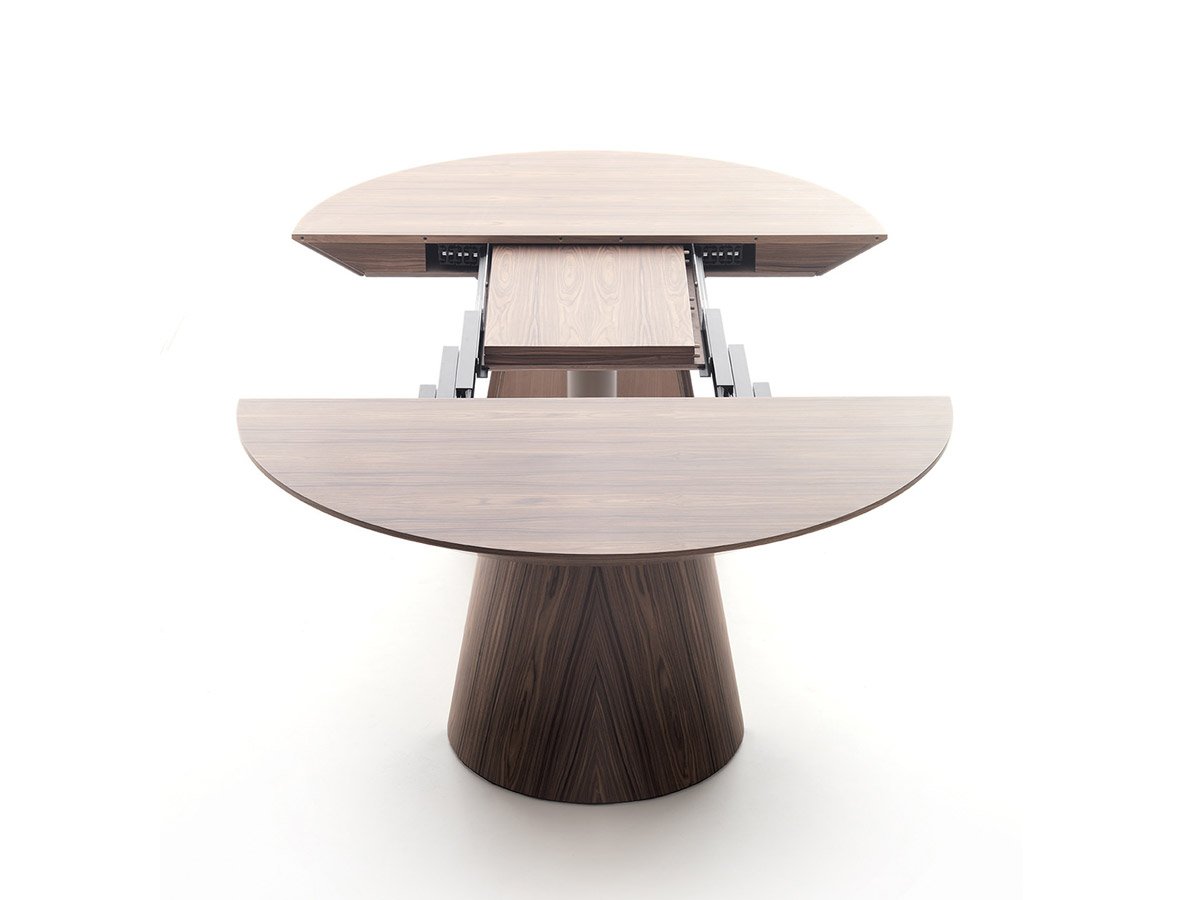 Rondò is the extendable table by Bauline designed by Enzo Berti. Round extendable table with aluminum guides and finishes in Canaletto Walnut.