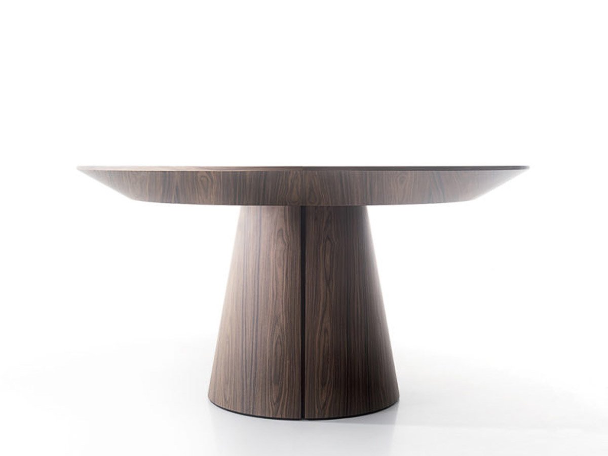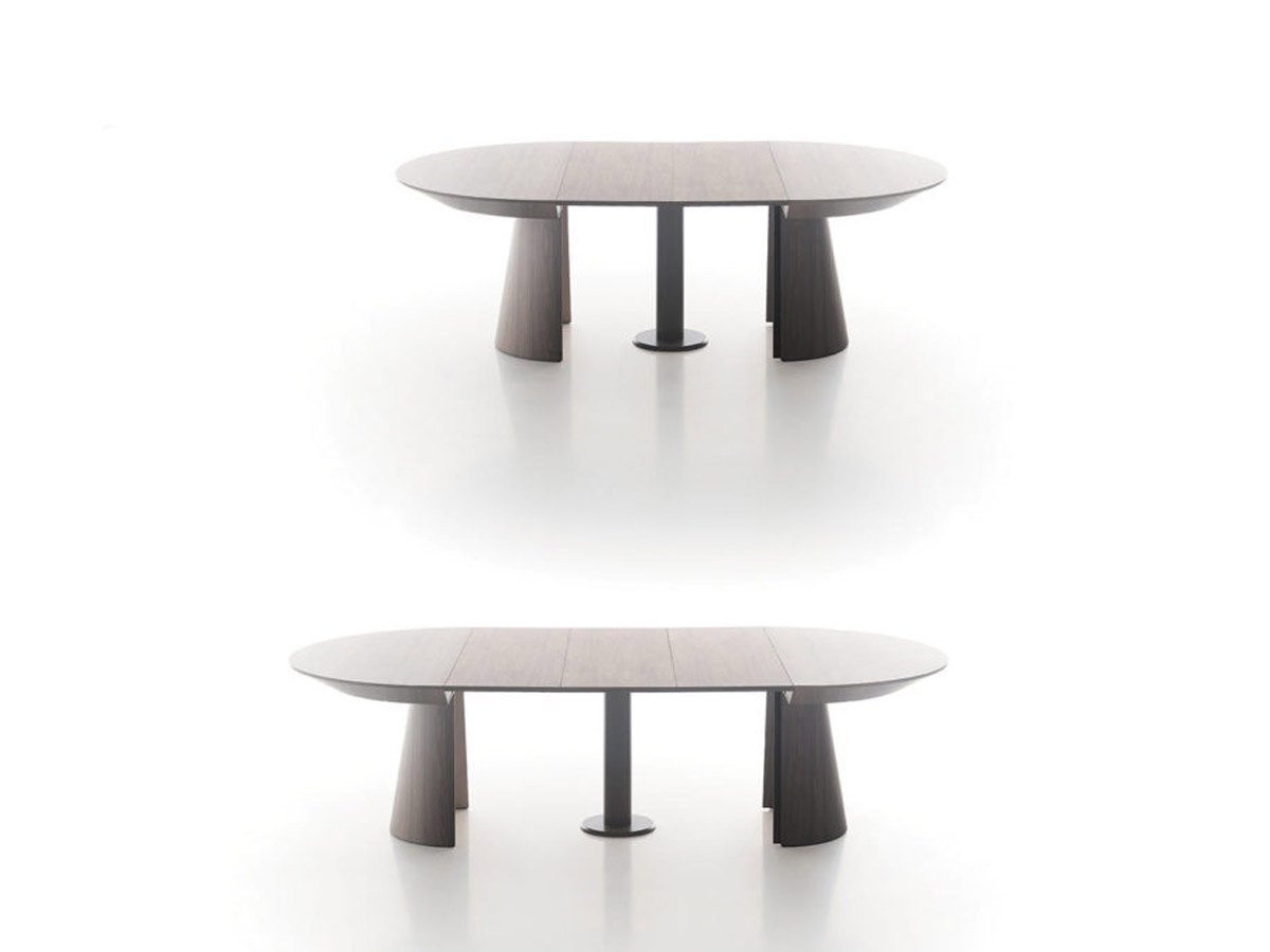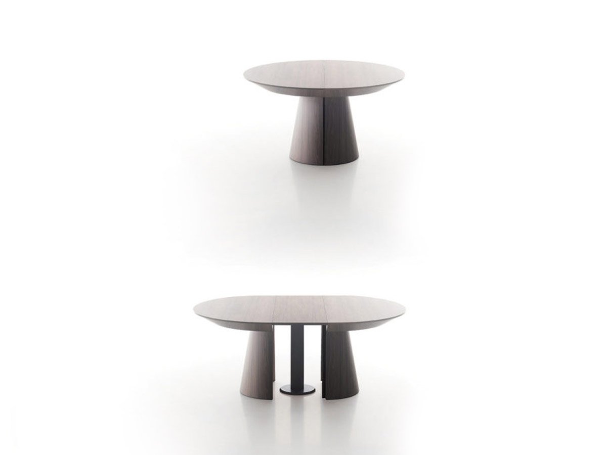 Rondò is the extendable table by Bauline designed by Enzo Berti. Round extendable table with aluminum guides and finishes in Canaletto Walnut.