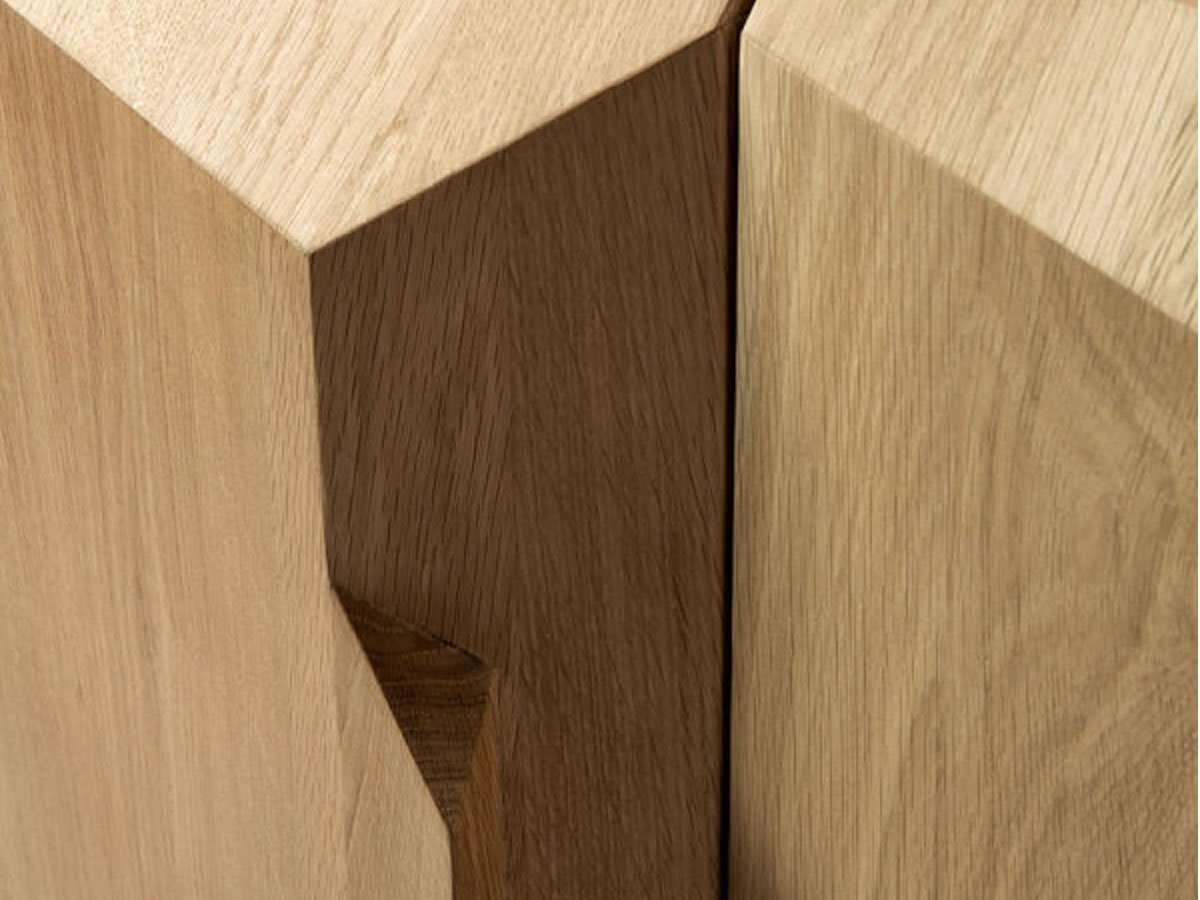 Stairs is a sideboard that is striking for its rigorous appearance. Consisting of a series of interlocking volumes that give an original and sophisticated three-dimensional effect. Composed of angular shapes that form the heart of a design that aims to distance itself from static and immobile surfaces. Observing it, one perceives a volume that alters the view of the sideboard as you walk by.