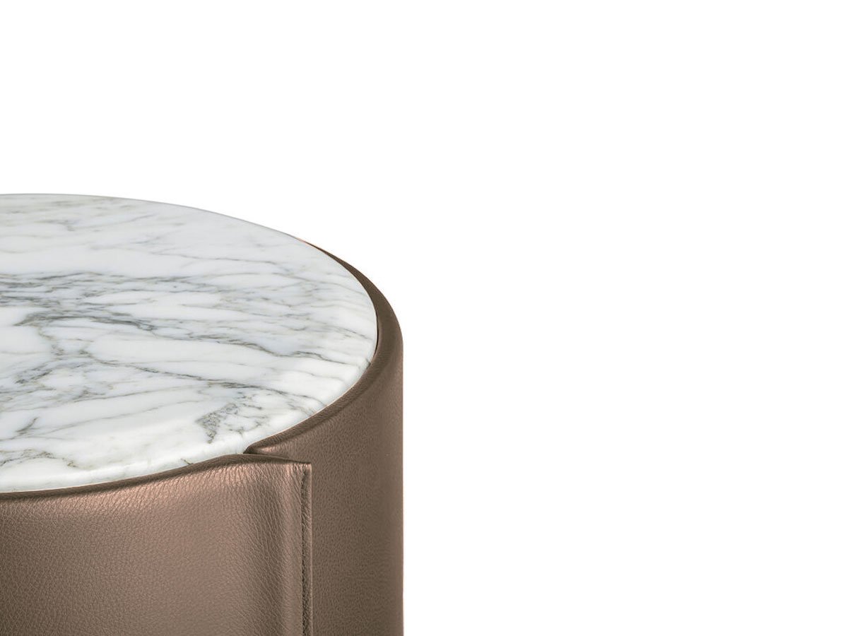 In this version: Door opening on the left - structure upholstered in SC 40 Cachemire leather - Top in semi-glossy Arabescato Venato marble.