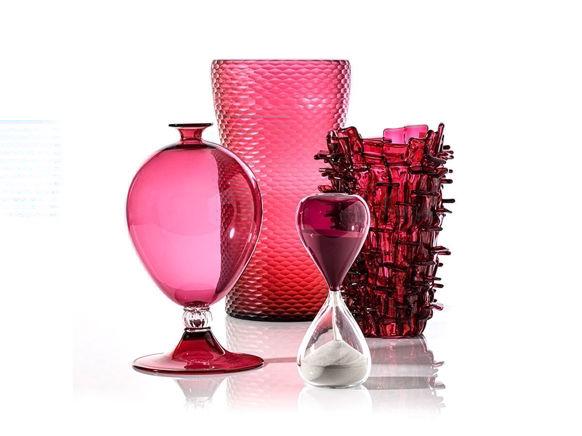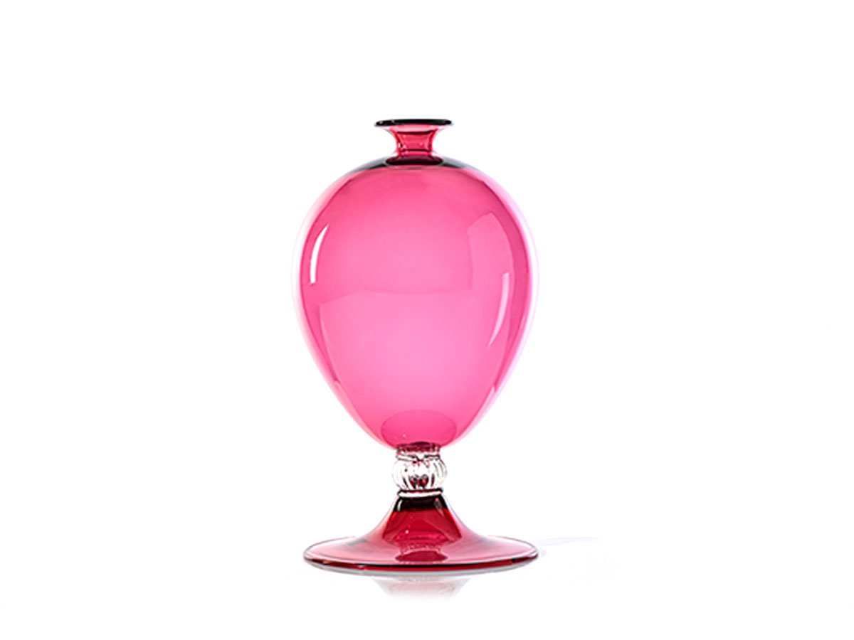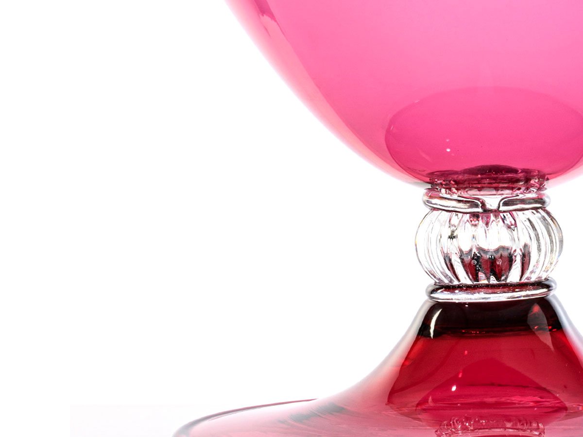 Veronese 600.01 by Vittorio Zecchin, artistic director of the company from 1921 to 1925, is a Venini classic. Today in the iconic Magenta color version, like the company's other best sellers, in an exclusive limited edition.This iconic Venini vase represents the perfect balance in the combination of impeccable style and the craftsmanship of Venini's master glassmakers. Unique and inimitable it becomes the symbol of its 90th anniversary, handmade and blown, inspired by Veronese's painting of the Annunciation. The new capsule collection Magenta by VENINI dresses the brand's icons with this hue rich in meaning and bearer of a poetic message, the great classics of the Fornace, in their transparent and satin versions, take on a contemporary guise. The 1930s elegance, roundness, ornamental style and optical illusions of these timeless objects are accentuated by the use of a vigorous and optimistic color.Magenta color model with Crystal decoration
