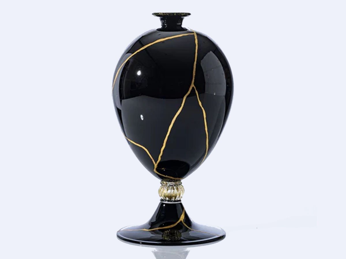 Veronese 600.17 Kintsugi Black/Gold Leaf Vase is a vase designed by Vittorio Zecchin and produced by the Venini brand in limited edition.